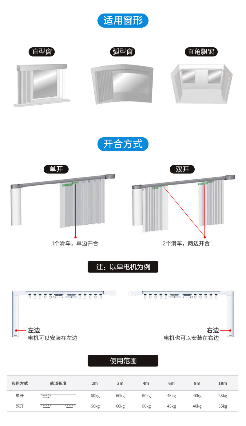 5.遇阻停止功能:當您用手拉住正在打開~關閉過程中的窗前時,當窗簾遇到阻力則會自勘停止.