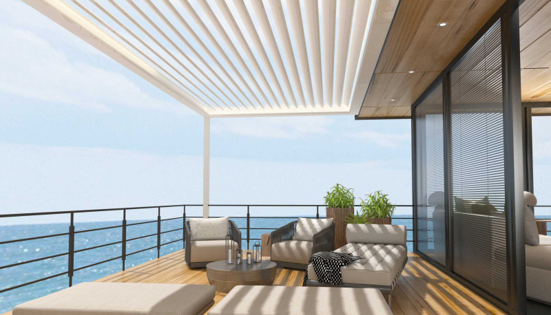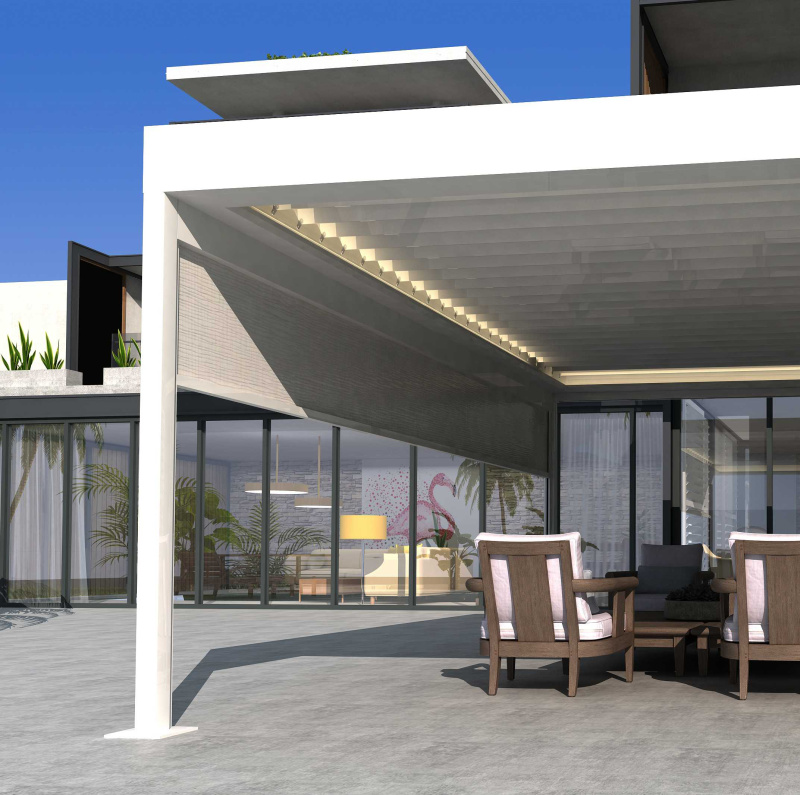 電動防風卷簾 防風卷簾通過特殊的設計、測試、工藝處理,將面料與金屬結構有效地結為一個整體。是一款集隔熱、遮陽、調節光線、保護私密、防風、防紫外線輻射于一體的優良產品。 | |